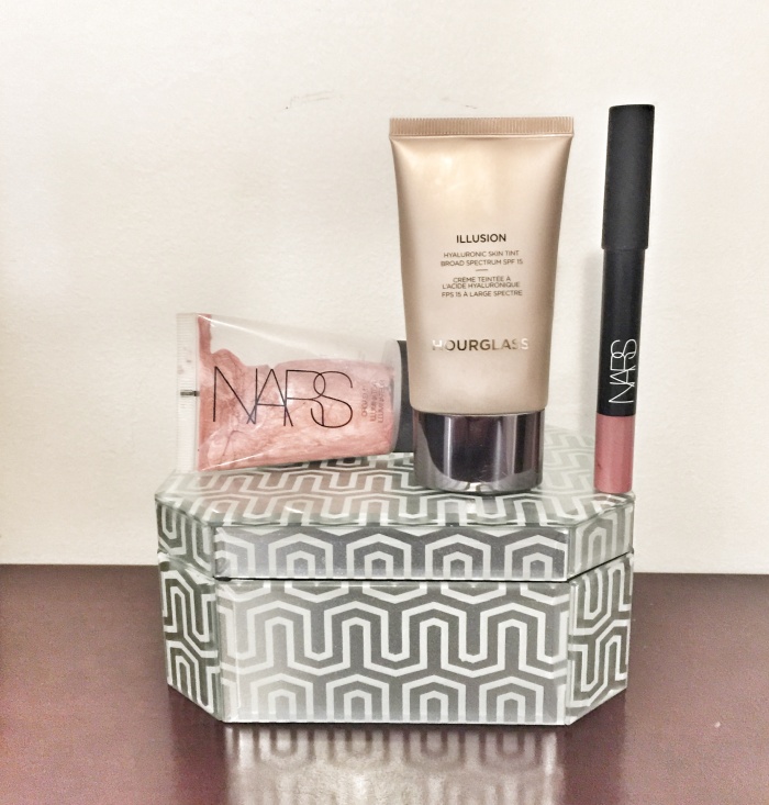 HOURGLASS ILLUSION HYALURONIC SKIN TINT: If you're over 30 and you don't live in a tropical area, you need hyaluronic acid. This doubles as your dose of of hyaluronic acid plus a tinted moisturizer. I will say, you only need a little of it. I actually mix in a little drop with my Cetaphil moisturizer (that's my daytime moisturizer and I find it works the best, better than the expensive creams) and put the Orgasm on my cheeks after that. Then concealer. Then lip stuff. Bonus: it has a little bit of SPF.