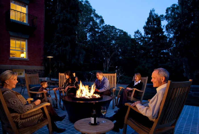 - Amenities include complimentary continental breakfast and evening wine and cheese reception, WiFi, and flat-screen TVs. Outside there are rocking chairs on the front porch and fire pits and a patio in the back with a fire pit. Overnight parking is a reasonable $7 a night and the hotel provides a shuttle around The Presidio and to downtown. Cribs and cots can be arranged too.
