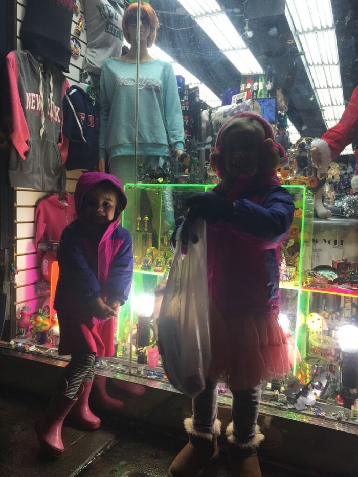 + The location is CHOICE. We touched on this above but you are so close to everything including The Plaza (where Eloise lives), Columbus Circle (where you can brunch with kids in a refined space at LandMarc), that super cool Apple store on 5th Avenue (sad FAO Schwartz and the dancing piano is gone), and Quality Meats (an upscale steakhouse where you can actually take your children since they have a off-menu kids' menu. Provided that you go at 5pm and bring a ton of Shopkins and My Little Ponies to keep them quiet, of course.) It is also around the corner from this cheesy souvenir shop where we bought earmuffs and where later on, the girls wanted to pose for a picture. #Kidsdothedarndestthings
