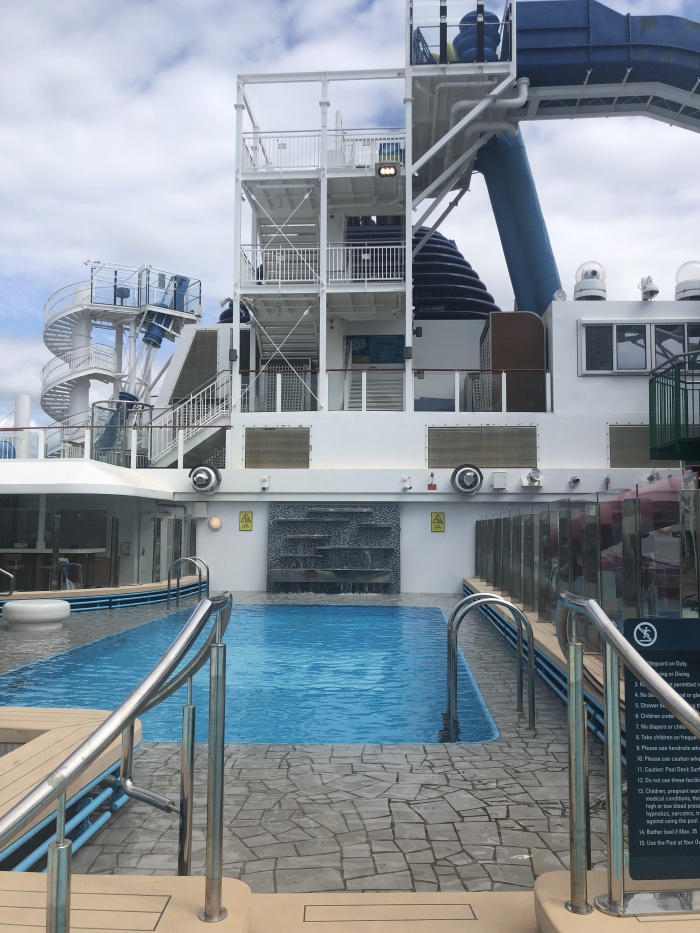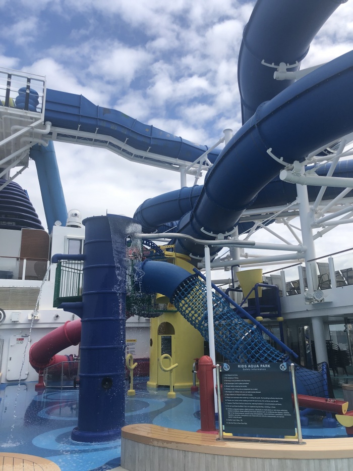 The Aqua Park on Norwegian Joy used to be a tai chi park when the ship was cruising around Asia. But we wish they could have made the pools a bit bigger when they redid this part of the ship. There is a little splash zone for kids and a giant, twisty waterslide but otherwise, there's just a lot of empty space. Luckily, there's a Starbucks cart that peddles through offering cold brew to perk you up.