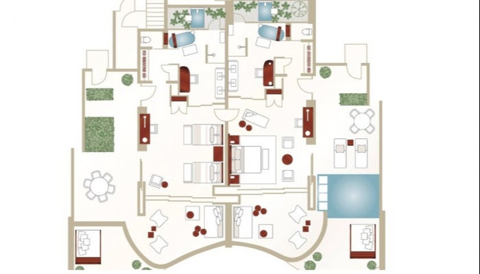 Family-Friendly Amenities: If you aren't familiar with Ritz-Carlton Reserves, these are ultra-luxe Ritz-Carlton resorts but at the same time they are incredibly family-friendly. At Zadún, a name that's inspired by the dunas surrounding the ocean in Cabo, the rooms are either suites or villas meaning there's lot of space for you to spread out and most rooms have their own private plunge pool. There's even a special oceanview 2-bedroom family suite that can sleep six. Peep the floorplan below!