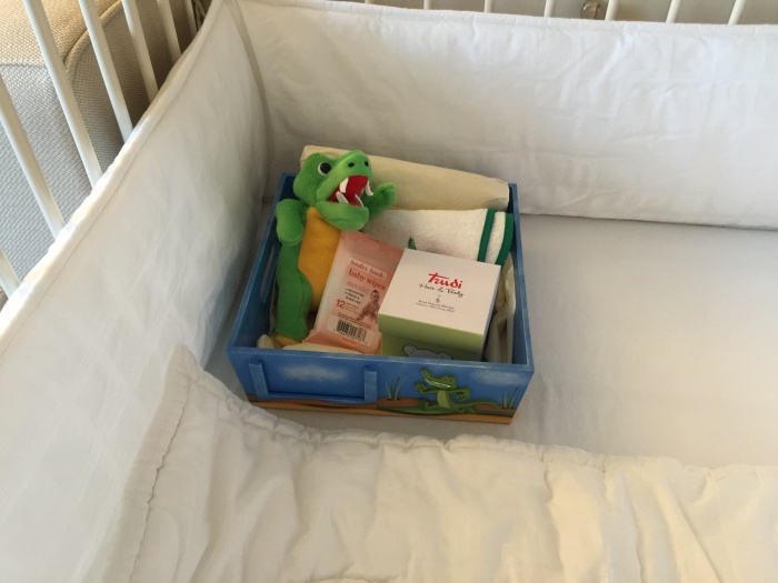 For the babies, the Four Seasons offers a cute little box filled with a bib, wipes, two diapers, a small plush alligator and Trudi bath toiletries. And of course, a crib can be sent up to the room.