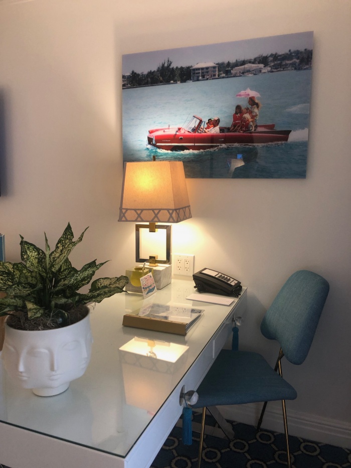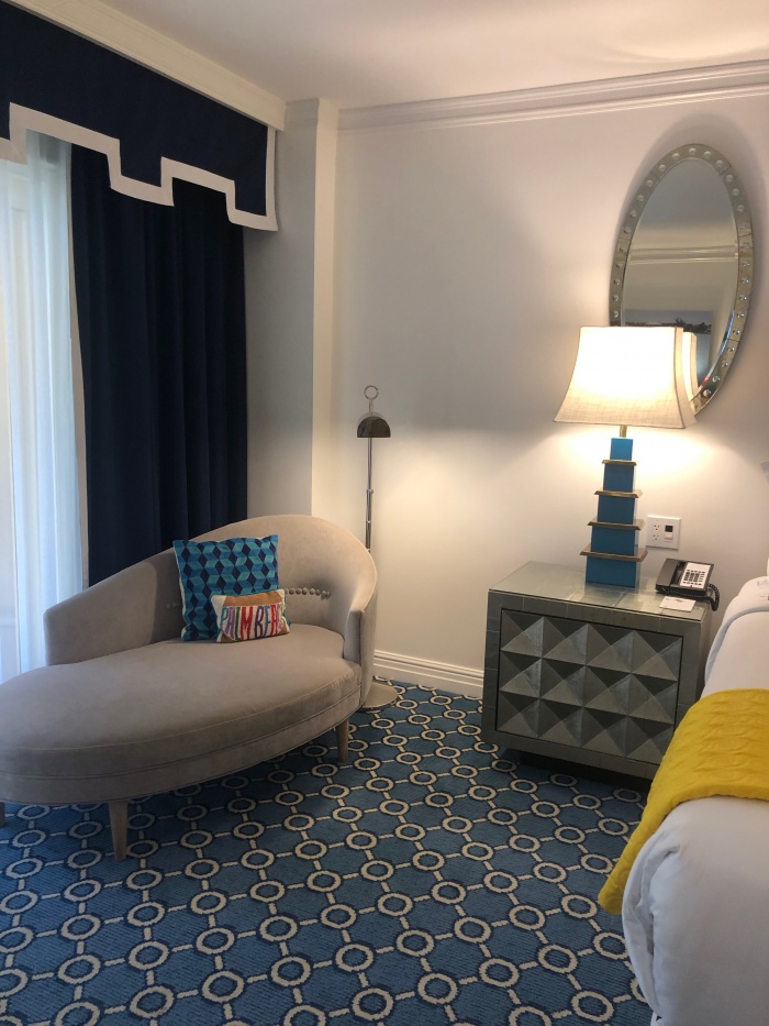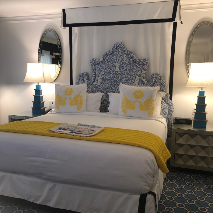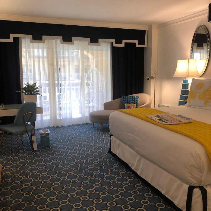 And as we teased above, the guest rooms and the beach bar were all designed by Jonathan Adler which makes your stay feel extra happy and sunshiney, especially when the winter doldroms are taking over. (Also, that bathroom wallpaper is CHOICE.)