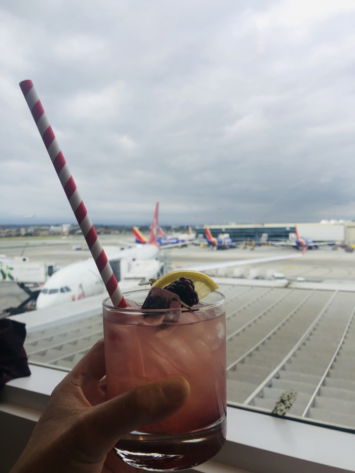 Located in Terminal 2, the Clubhouse is above the gates and has great views of the airplanes arriving, landing, and getting ready for the night flight. There are lots of places to sit and enjoy the view or the free WiFi. But the best part is the complimentary food and beverages that are served. When our flight to Manchester was delayed an hour, we were actually quite happy because it meant another Bramble cocktail and fries.