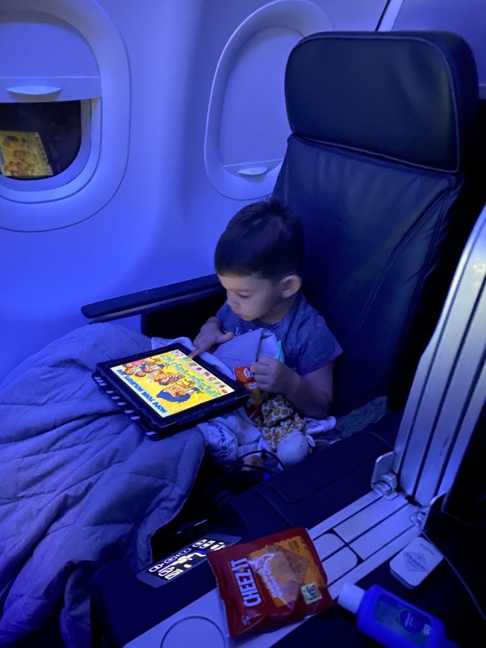 - COZY. The bedding is by Tuft and Needle and ultra cozy, especially when you lie flat in the seat. Our eldest randomly went to sleep for two hours after the flight took off.