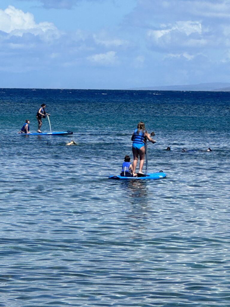 We took out one of the pedalboards for an hour which was easier for the older kids to manage than stand-up paddle-boarding, plus the littlest one could hang out on the back. The pedalboard glides over the surface so you can totally spot fish and turtles from it.