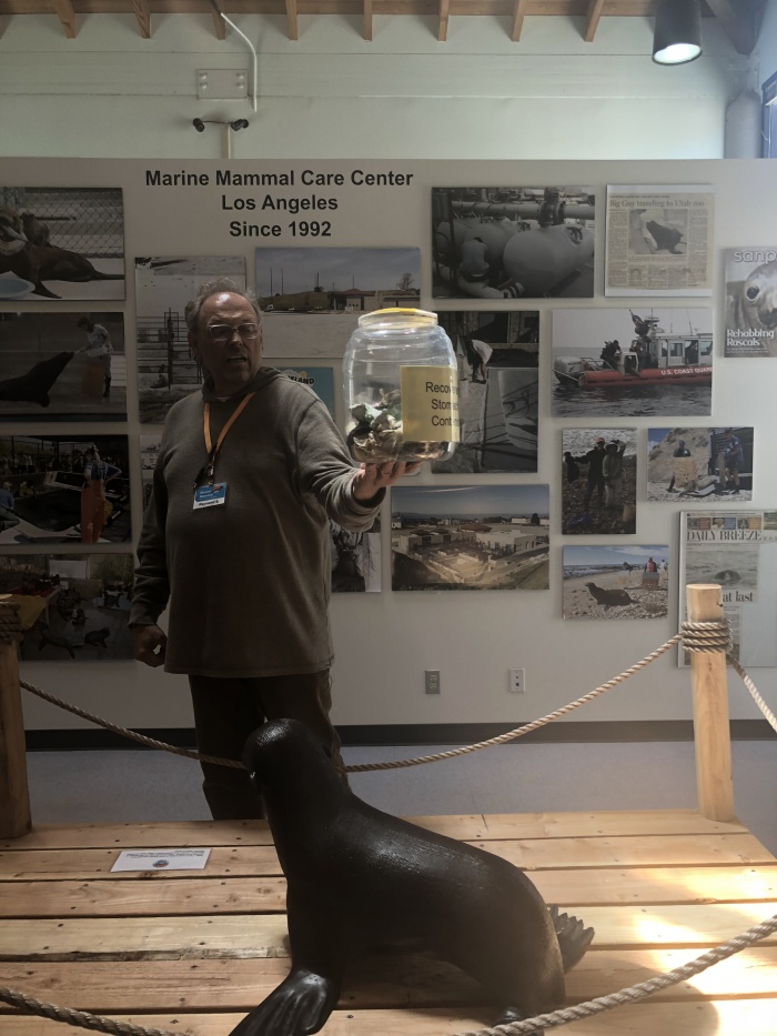 What Ages: We'd recommend elementary school children make this visit in order to have the most impact. The sea lions and seals are cute to look at (they love coming up to the fence to see who's greeting them), but you also want to be able to explain why they are in the pens and what will happen to them. Here's the center's marketing coordinator showing off actual contents that have been pulled from a seal's stomach. Ugh.