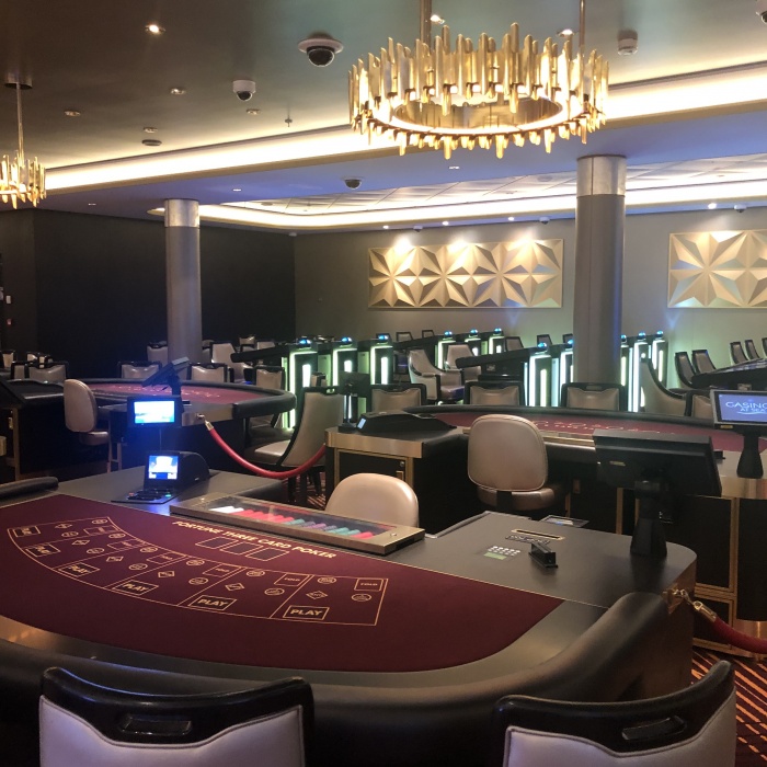 Even adults. The most happening spot for adults is 678 Ocean Place. That's easy to remember and easy to find because it's mid-ship on Decks 6,7, and 8. Here you will find a casino, a comedy club, some random shopping, several specialty restaurants (like the very popular Teppanyaki spot), the Waterfront outdoor dining and lounge areas, an outpost of The Cavern Club from Liverpool (made famous by The Beatles) and a few cool bars like the Sugar Cane Mojito Bar. The Joy Theater is also on Deck 7 where “Footloose!” The Musical can be seen. (Short review: it's cute, we already know the story but the tunes are catchy and the castmembers are adorable.)