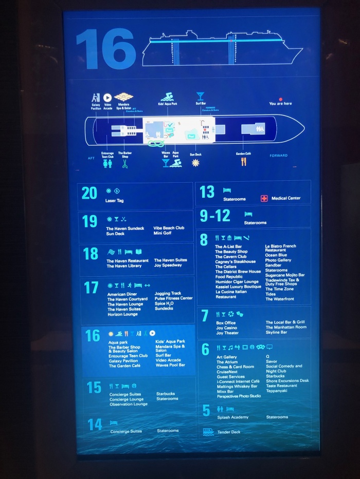 If you’ve been on Norwegian Bliss, this will look familiar. The Joy’s sister ship, Bliss, has many of the same restaurants, activities and features. Even the stateroom decor looks alike! So if you’ve been on Bliss, Joy will feel the same. And Norwegian will have another new ship called Encore that debuts in November with pretty much all of the same things onboard too.