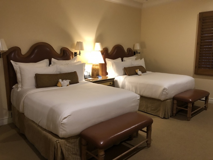 The starting room category at The Resort at Pelican Hill is a nearly 900-sq.ft. bungalow with fireplaces, private terraces and either a garden or ocean view. (Ocean view is a little more expensive.) These can easily sleep parents and two small children (on the pull-out sofa.) And since they are bungalows, there are no elevators to take. Simply pull up your car to your private parking space. If you need more room, opt for a Bungalow Suite which has nearly double the amount of space, an extra fireplace and a separate living room and dining area. The decor is oversized but comfortable and blanketed in neutral and cream colors. Fun family amenity: kids receive little stuffed pelicans on their beds!