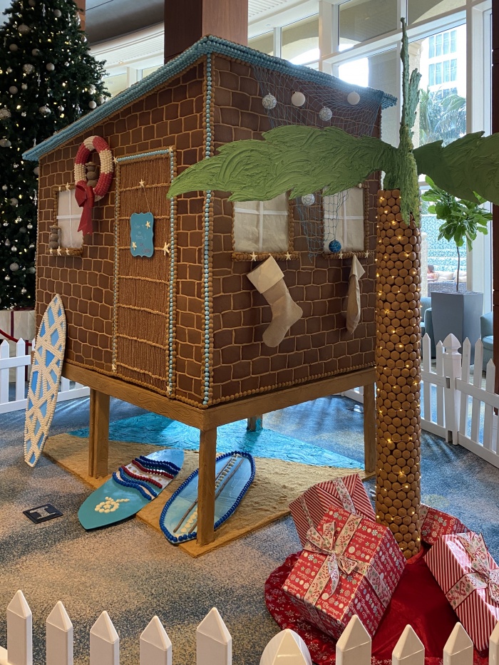 National Gingerbread House Day has come and gone but the Palm Beach Marriott Singer Island Resort & Spa has a giant gingerbread display up through the holidays. And true to its location, along Singer Island just 15 minutes from Palm Beach proper, the resort has chosen a life-sized gingerbread surf shack.