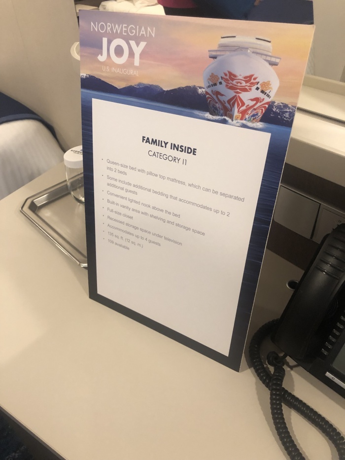 Below are photos and some videos of staterooms aboard The Norwegian Joy. These include: