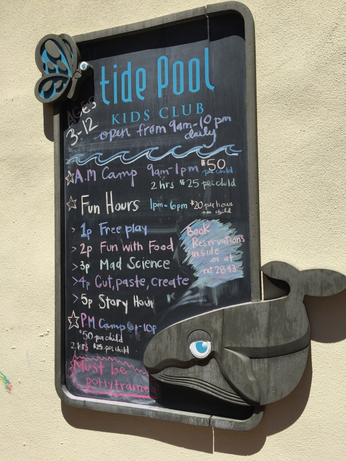 The Amenities: Our swish room on the fifth floor had a completely unobstructed view of the ocean from the small balcony. The king bed was beyond comfortable and since Terranea is a five-star resort, the bathrobes and slippers in the closet were an nice pampering touch. The bathroom was huge, with both a shower and a soaking tub. The room also has an empty mini-fridge for you to store your own drinks and snacks. We especially liked the plethora of outlets and USB ports around the room. But don't worry, there's a giant flat-screen TV on the wall should you want to look up from your mobile device. Most rooms have ocean views at Terranea, which is great news, however, the hallways are long and windy. Request a room near the elevator if you'd rather not lug your brood down the hallways.