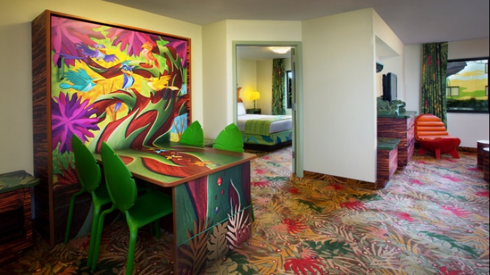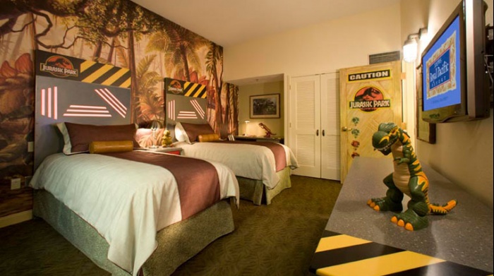 Loews Royal Pacific “Jurassic Park” Kids Suites: With the relaunch of Jurassic Park, these suites at Loews Royal Pacific, also at Universal Orlando, are now back in high demand. Featuring a similar configuration as the Despicable Me suites, the Jurassic theme includes caution signs, jungle murals, and “friendly” dinosaurs toys.