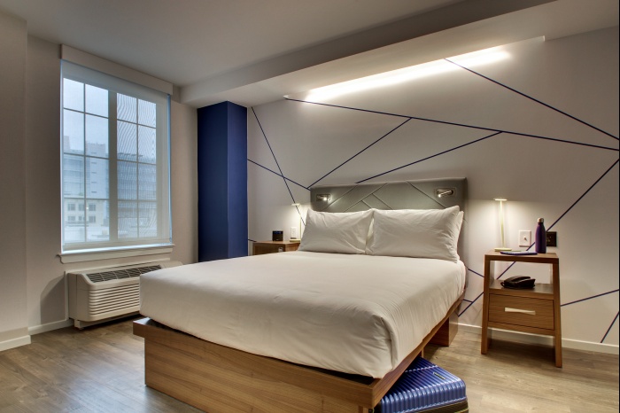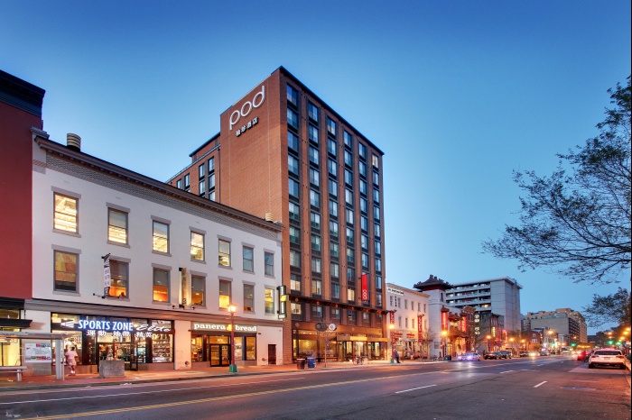 The Pod Hotel D.C. is a spin-off of the two existing Pod Hotels in New York City, where space is minimal but function and design are maximized. Or as Pod puts it—”Pod DC is all about surprising details, intelligent design and no fuss.”