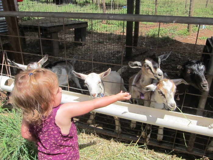 What Ages?: You can bring children of all ages here, especially since there is a large sandbox for kids to play in that's enclosed by windsurfing boards. However, while both our 3.5-year-old and our 1.5-year-old loved feeding the goats, the younger one got restless when we toured the rest of the small property and kept running off. So younger toddlers might need to run around the sandbox for a bit.