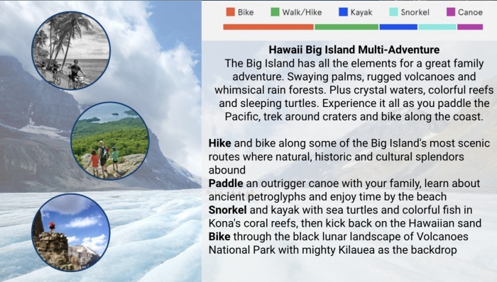 Backroads is a popular, family-friendy adventure company with trips and itineraries all over the world (although some of these have been suspended because of Covid-19.) The tours vary wildly, but most include two to five hours a day of hiking and biking, or hiking and walking, or other active ways of getting from point A to point B.