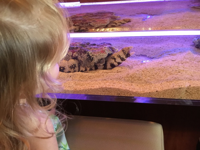 There's even a second bar at the far end of the restaurant with an aquarium of small fishes and an eel, instead of your usual wooden bartop. This makes for a great distraction for the kids while you're waiting for your food to arrive.